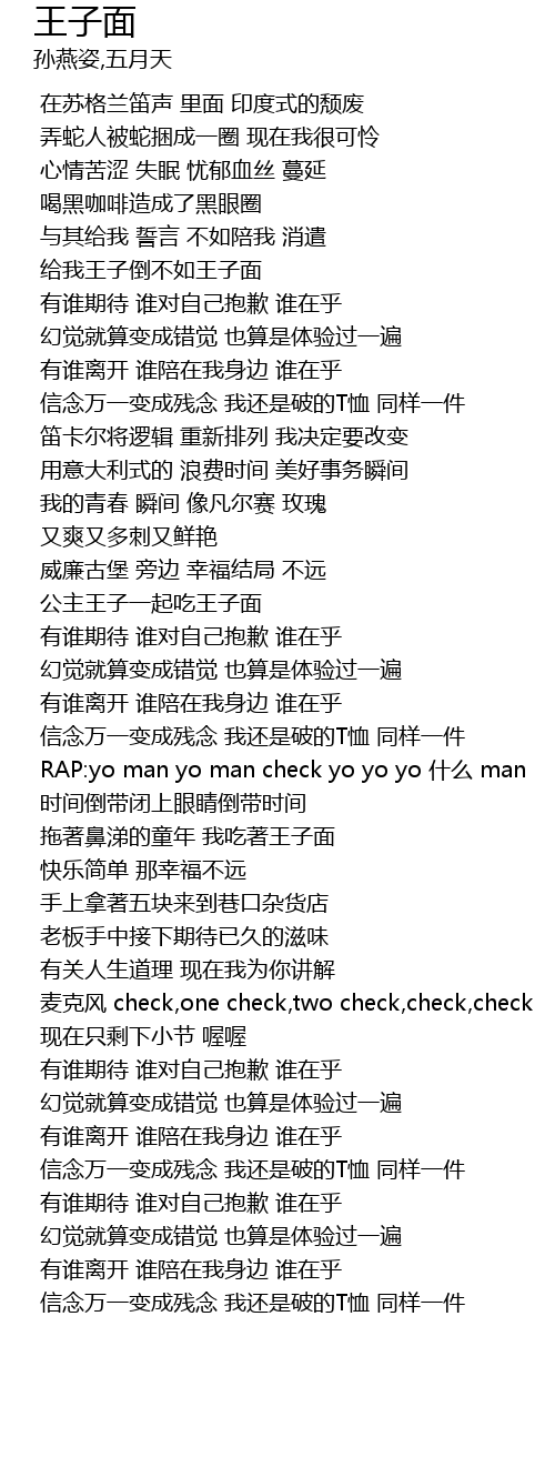 | [02:14.58] | gōng zhǔ wáng zǐ yì qǐ chī wáng zǐ miàn |