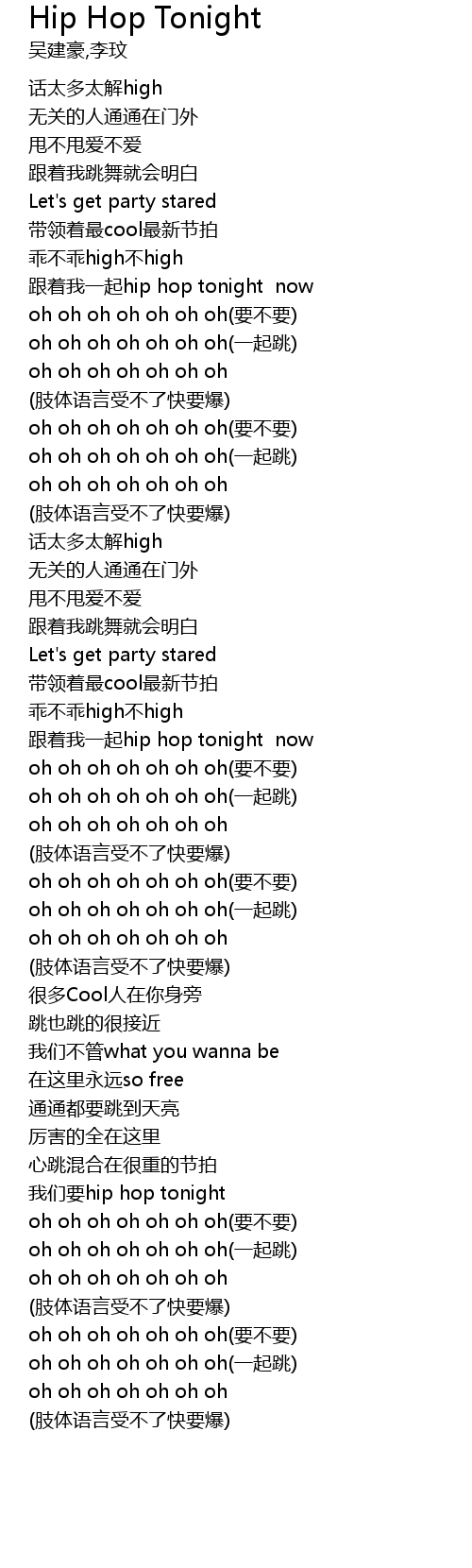 | [01:02.420] | 跟着我一起hip hop tonight now |