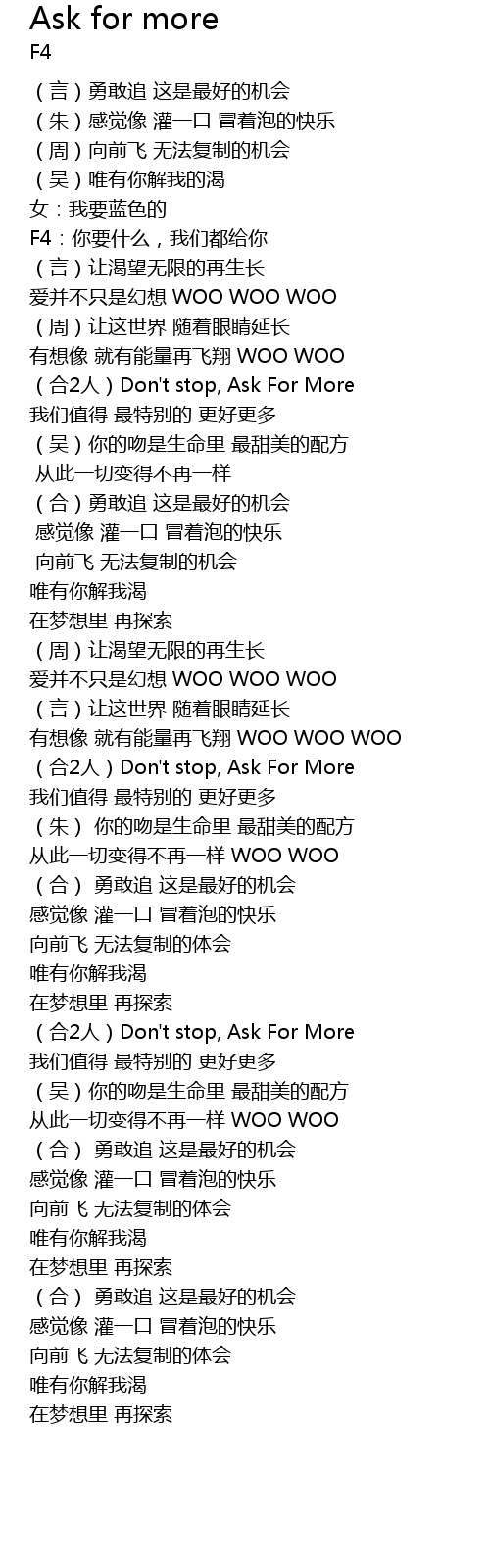 | [00:22.69] | F4:你要什么,我们都给你 |