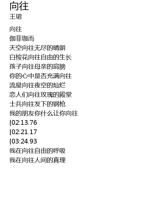 | [03:54.75][03:24.93][02:28.66] | 向往着 向往着 自由的歌唱 |