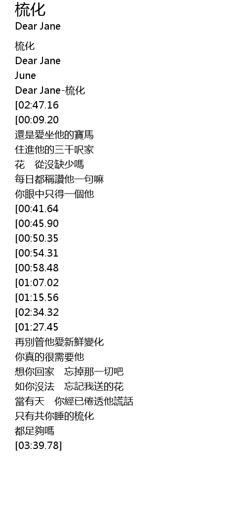 | [01:35.76][00:09.20] | tā hái dài nǐ hǎo ma |