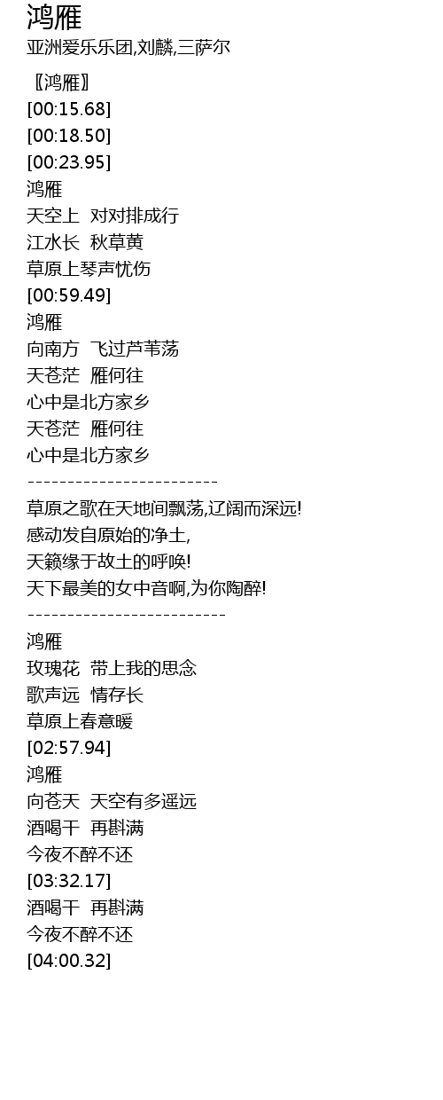 | [00:00.00] | 〖鸿雁〗 |