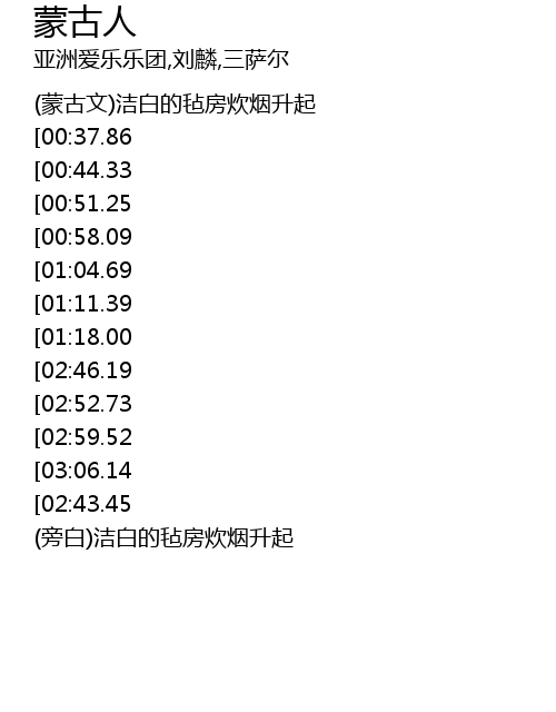 | [00:30.86] | (蒙古文)洁白的毡房炊烟升起 |