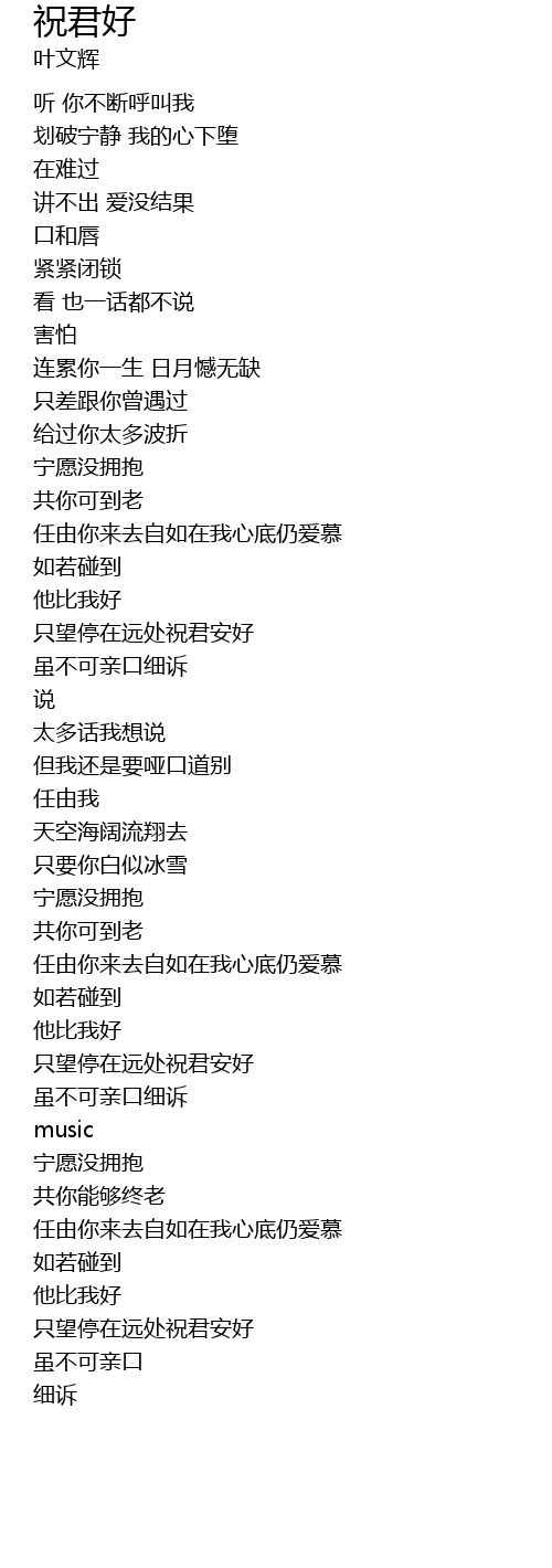 | [01:32.53] | zhǐ wàng tíng zài yuǎn chù zhù jūn ān hǎo |