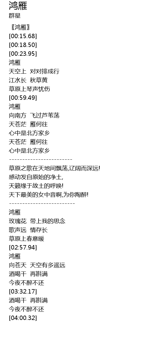 | [01:00.20] | 鸿雁 |