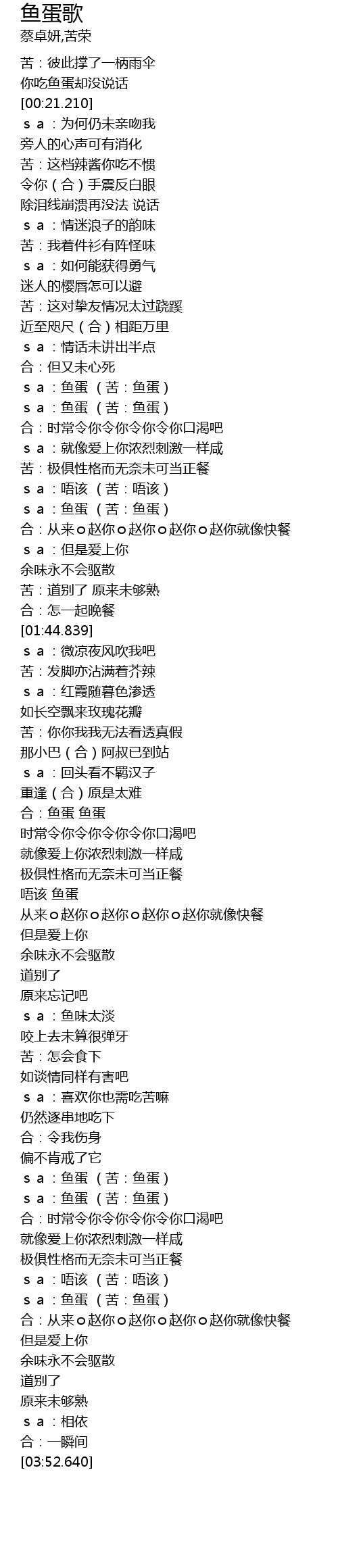 | [02:28.640] | 合:鱼蛋 鱼蛋 |