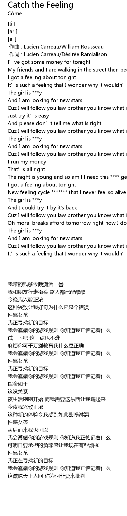 | [01:26.49] | New feeling cycle ******* that I never feel so alive |