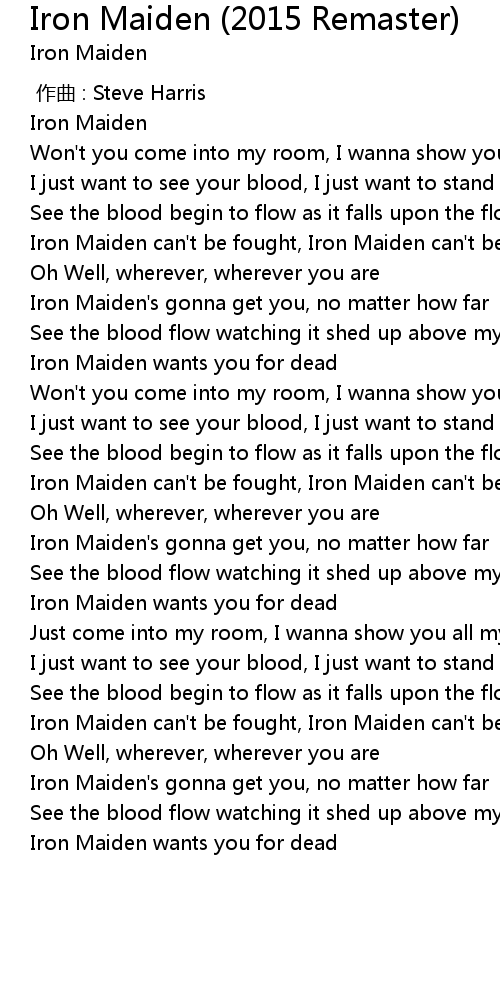| [02:58.284] | Iron Maiden's gonna get you, no matter how far |