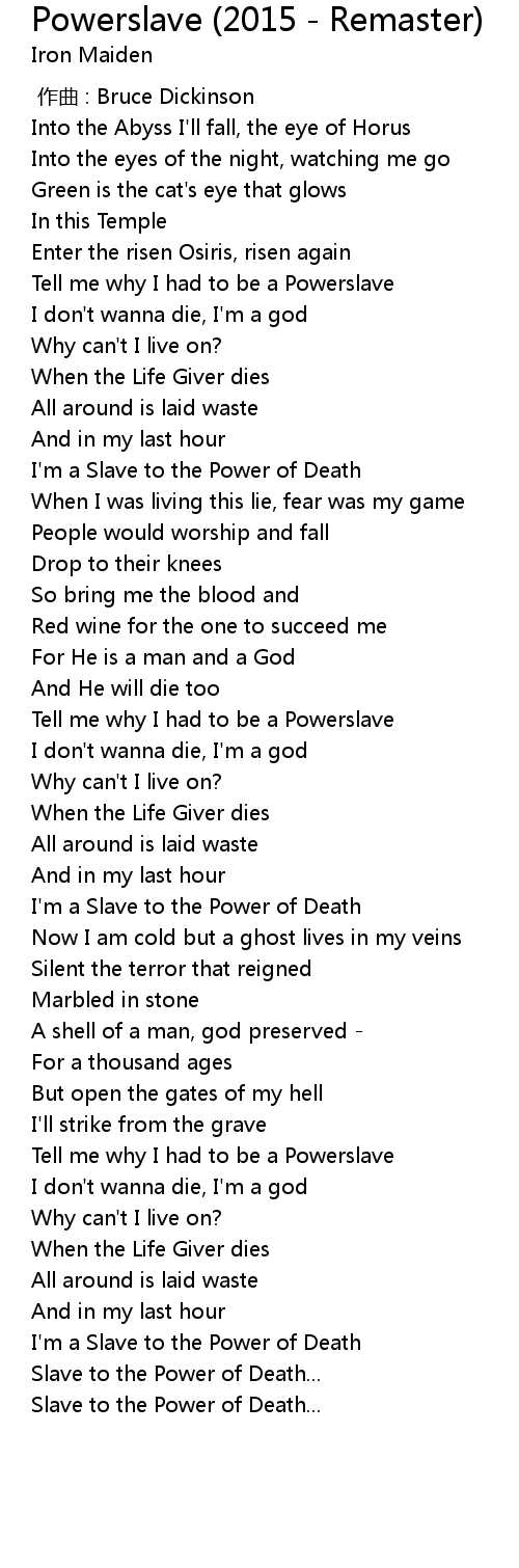 | [02:50.284] | I' m a Slave to the Power of Death |