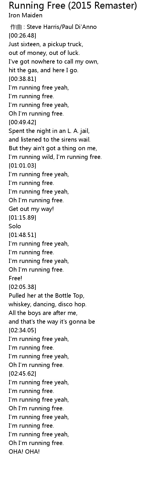 | [01:58.13] | Oh I'm running free. |