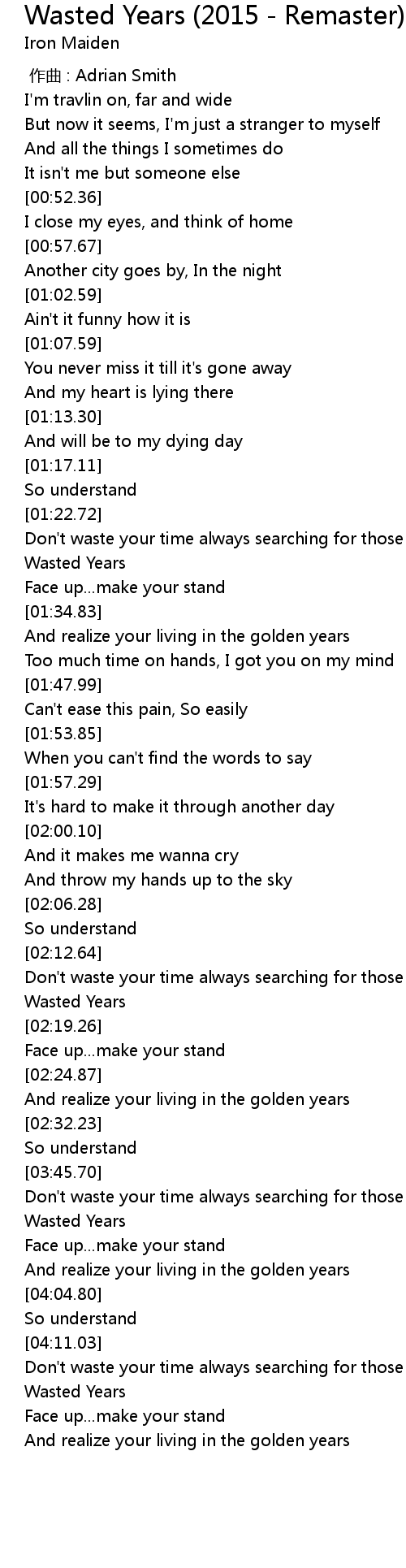 | [03:50.44] | Wasted Years |
