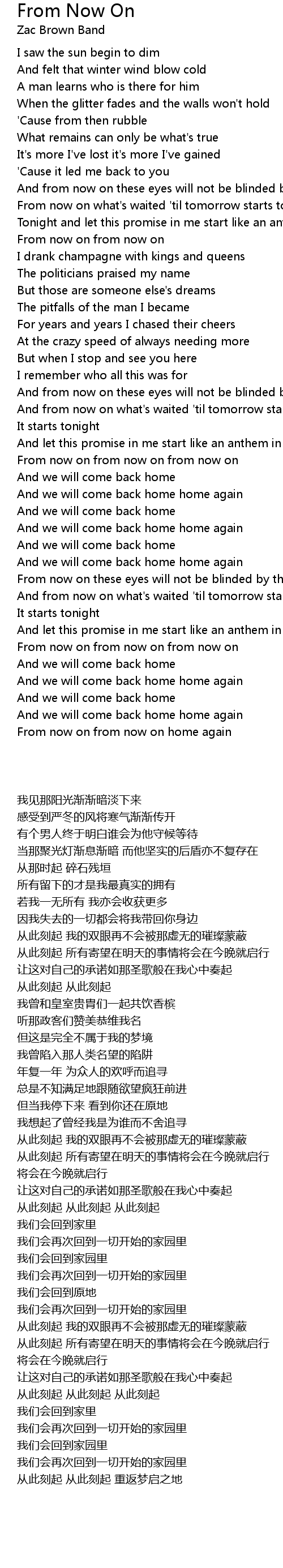 From now on from now on home again |