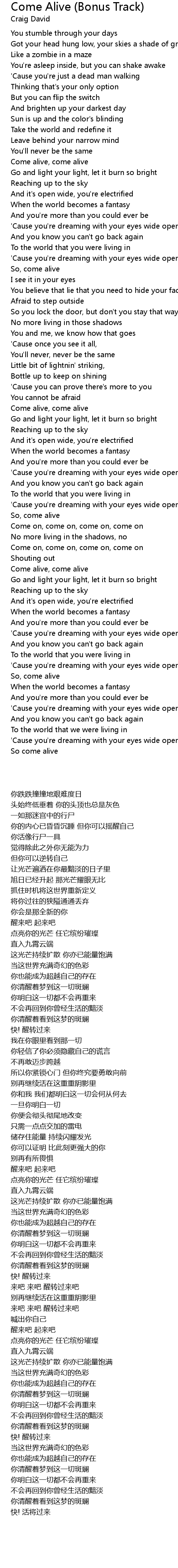 Come alive, come alive |