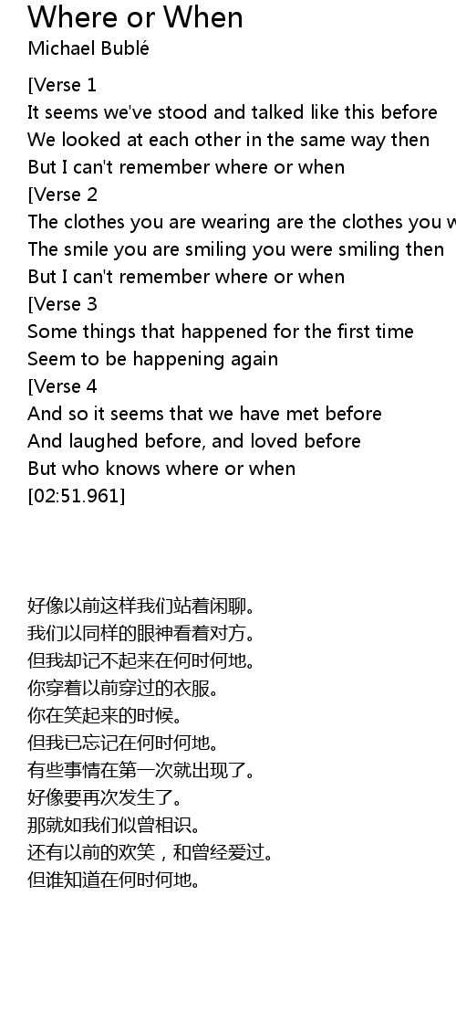 But I can't remember where or when |