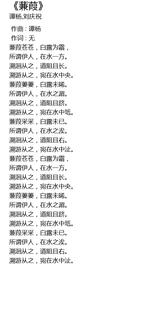 | [01:39.919] | jiān jiā cǎi cǎi, bái lù wèi yǐ. |