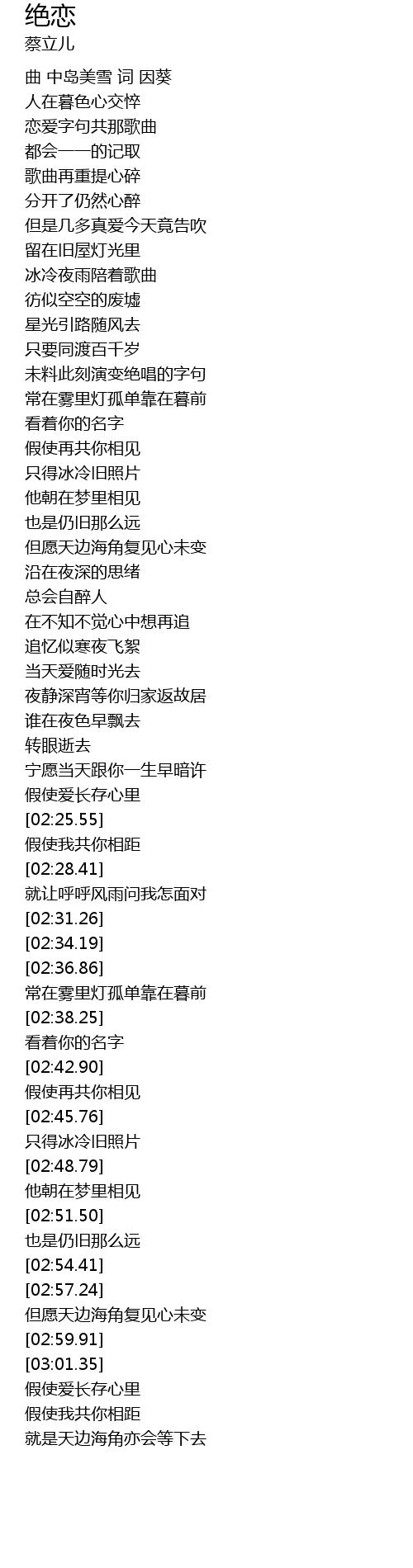 | [02:57.54] | 但愿天边海角复见心未变 |