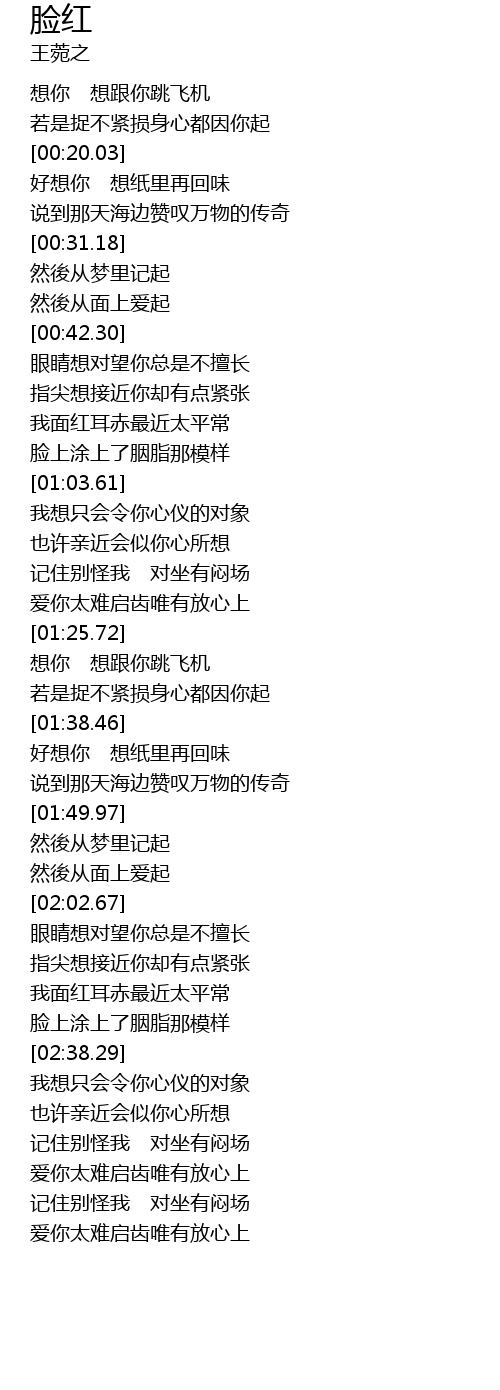 | [00:53.10] | wǒ miàn hóng ěr chì zuì jìn tài píng cháng |