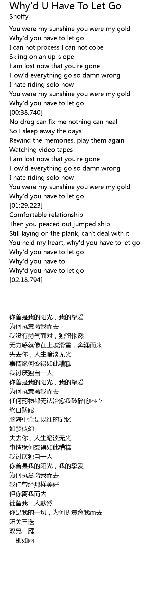 | [01:53.413] | You held my heart, why'd you have to let go |