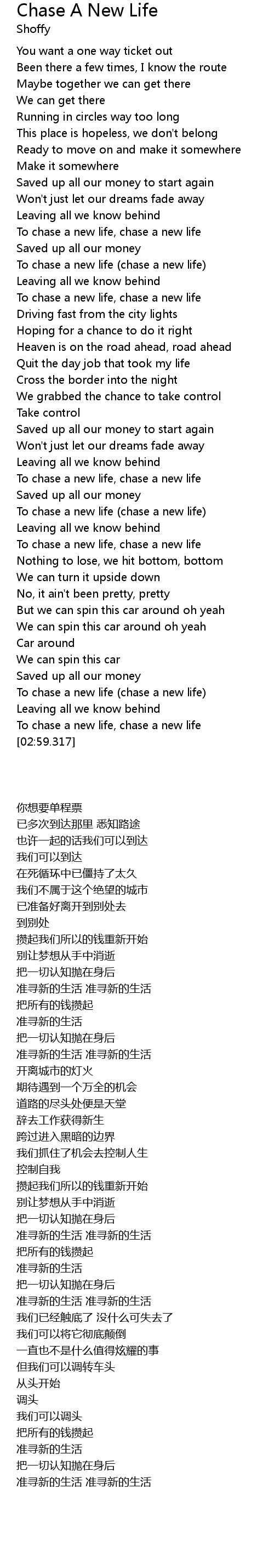 | [02:52.792] | To chase a new life, chase a new life |