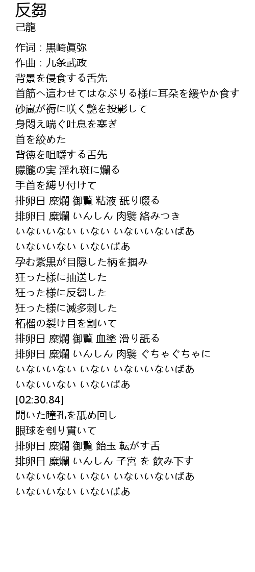 | [01:58.36] | 排卵日 糜爛 御覧 血塗 滑り舐る |