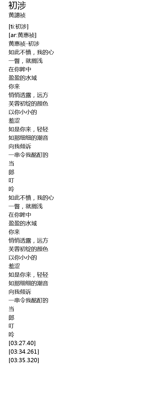 | [00:01.73] | 黄惠祯-初涉 |