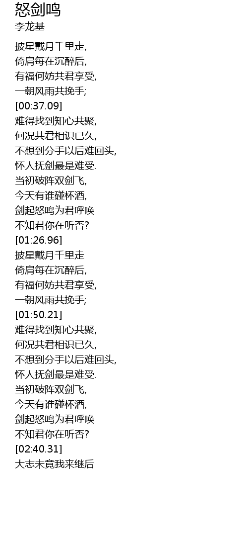 | [02:33.95] | 剑起怒鸣为君呼唤 |