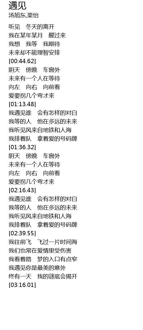 | [02:17.44] | 我遇见谁 会有怎样的对白 |