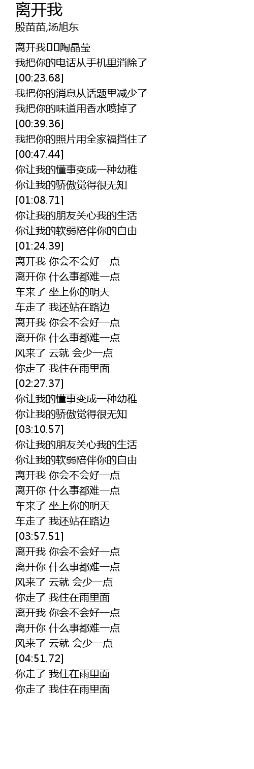 | [04:36.89] | li kai ni shen me shi dou nan yi dian |