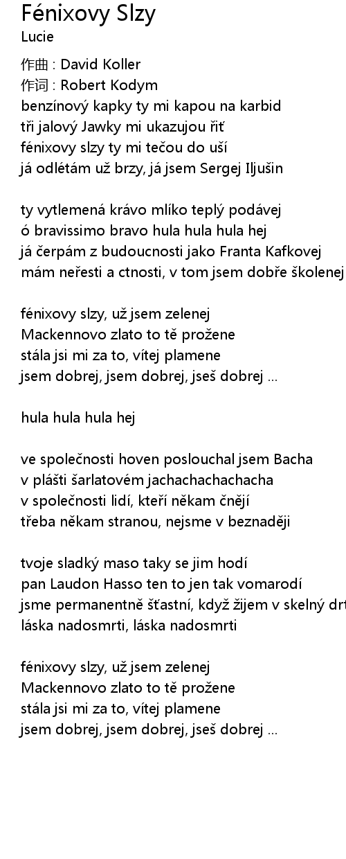 | fénixovy slzy ty mi tečou do uší | |