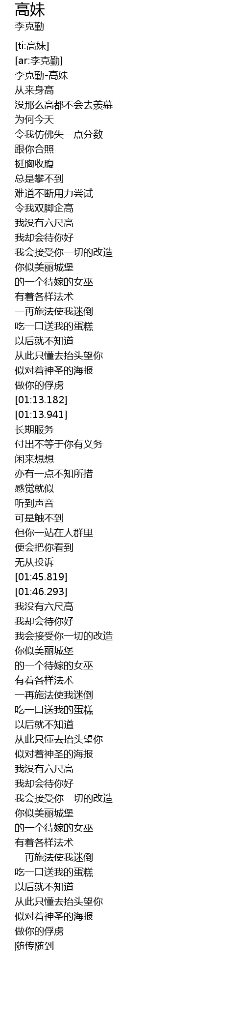 | [00:01.95] | 李克勤-高妹 |