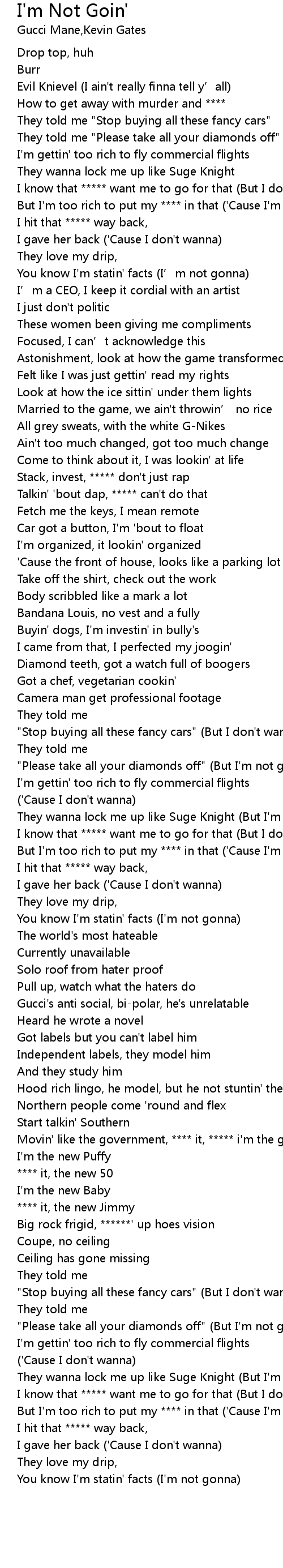 | [00:32.56] | But I'm too rich to put my **** in that ('Cause I'm not gonna) |