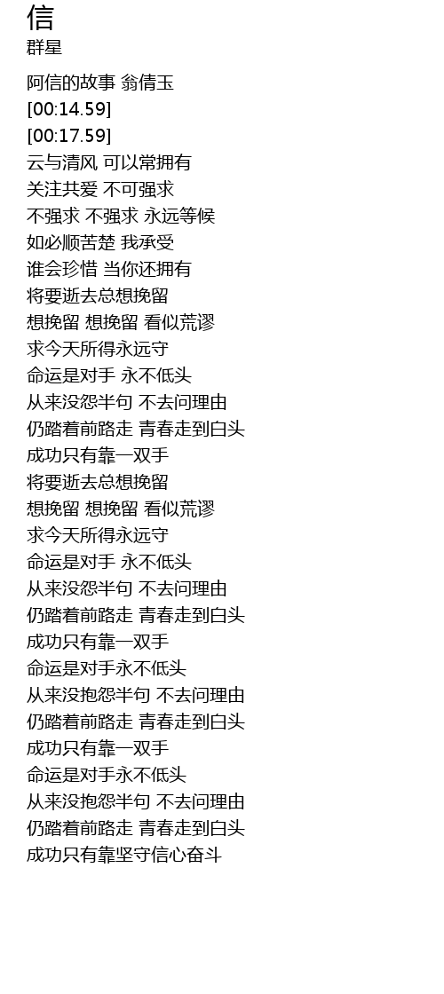 [00:12.59] ā xìn de gù shì wēng qiàn yù