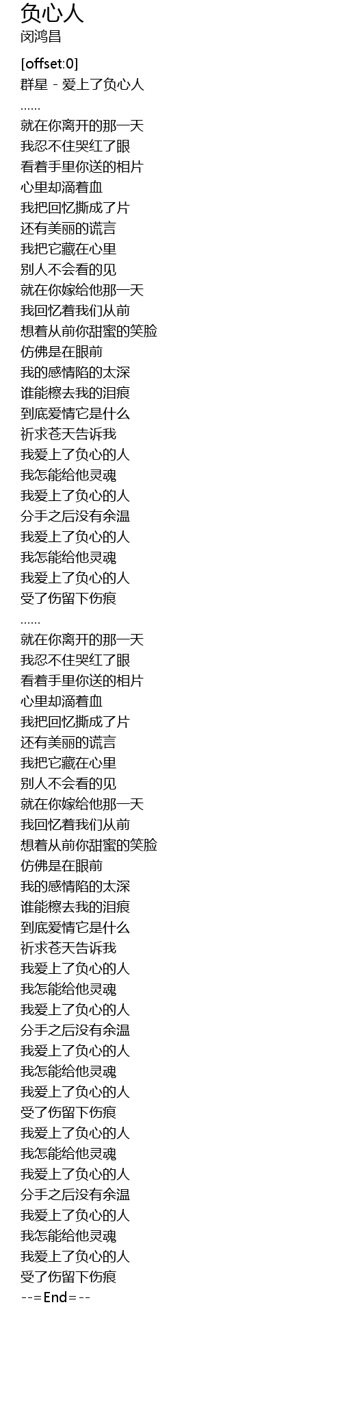 | [00:09.84] | 群星 - 爱上了负心人 |