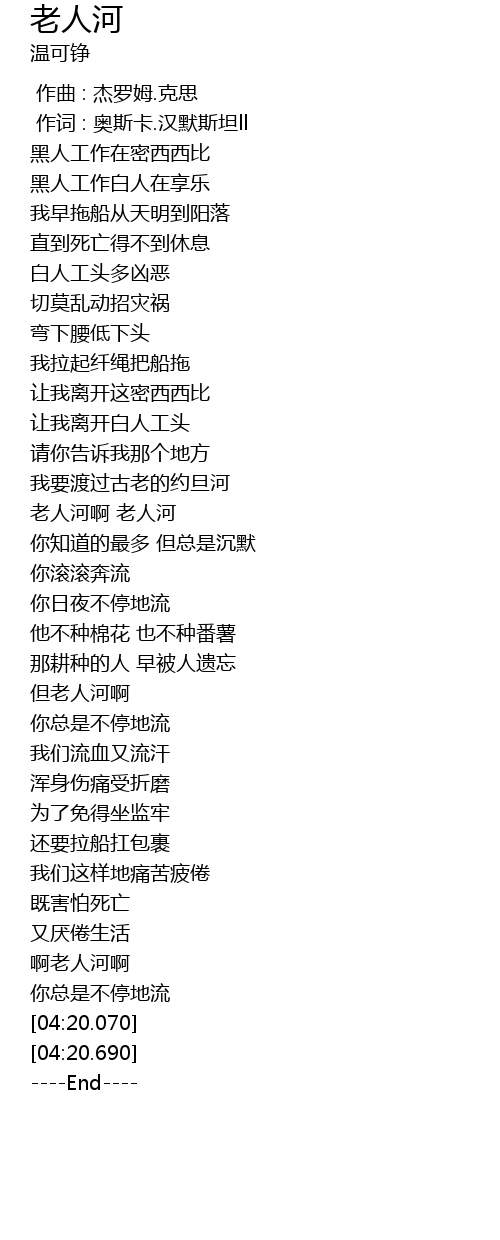 | [02:22.310] | 老人河啊 老人河 |