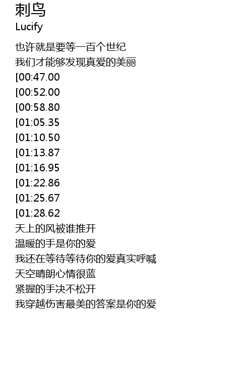 | [02:09.75][00:58.80] | 就像刺鸟的宿命悲剧却勇敢 |
