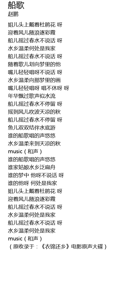 | [02:39.00] | 谁的船歌唱的声悠悠 |