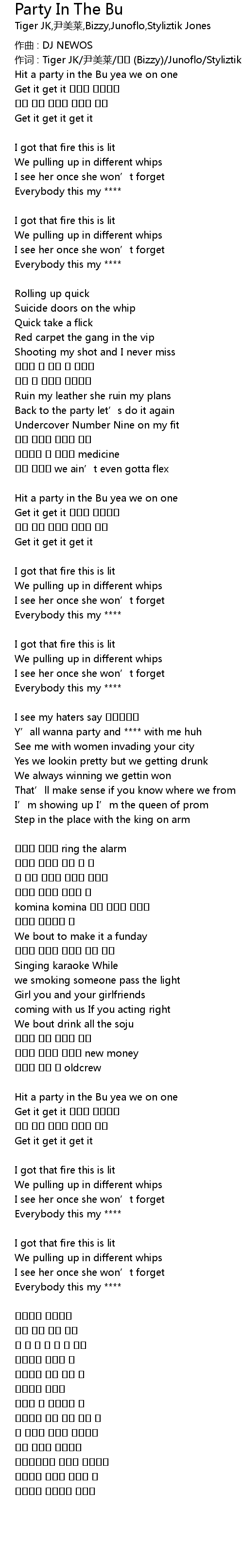 | 作词 : Tiger JK/尹美莱/비지 (Bizzy)/Junoflo/Styliztik Jones | |