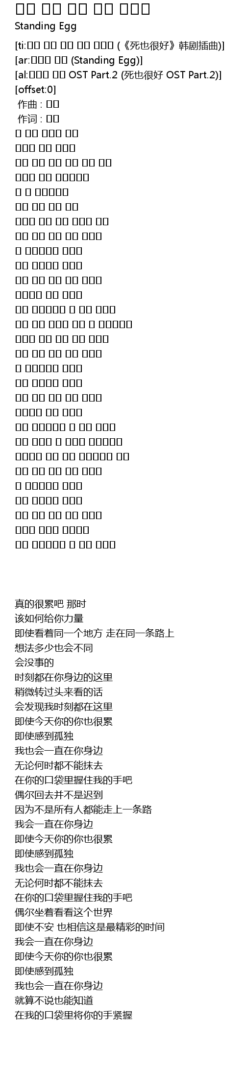 | [ti:항상 너의 곁에 내가 있을게 (《死也很好》韩剧插曲)] | |