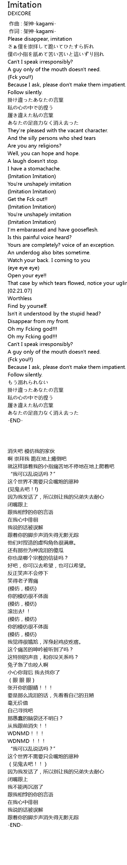 | [00:14.56] | Please disappear, imitation |