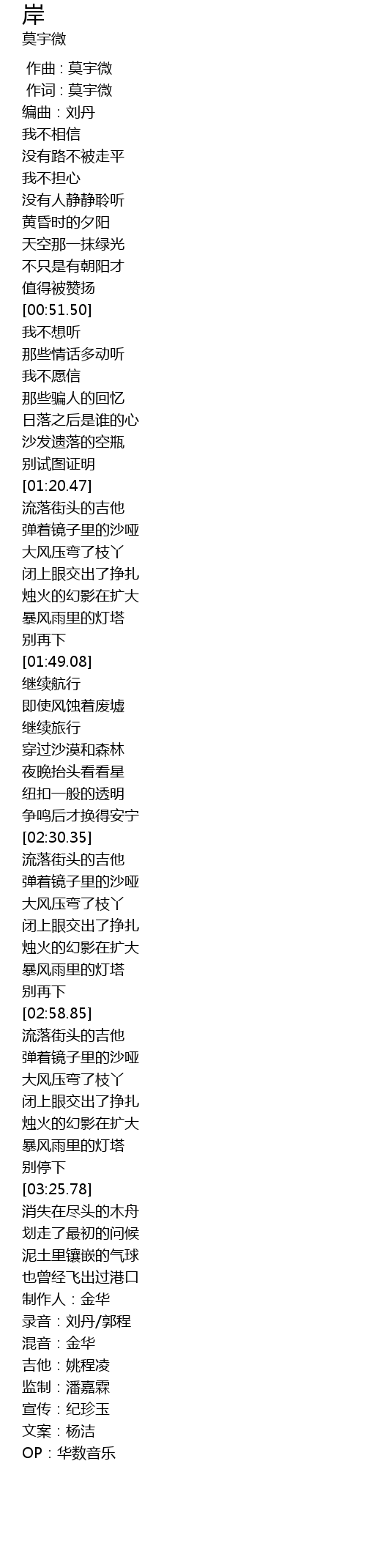| [00:00.000] | zuò qǔ : mò yǔ wēi |