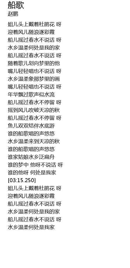| [02:52.440] | 谁的船歌唱的声悠悠 |