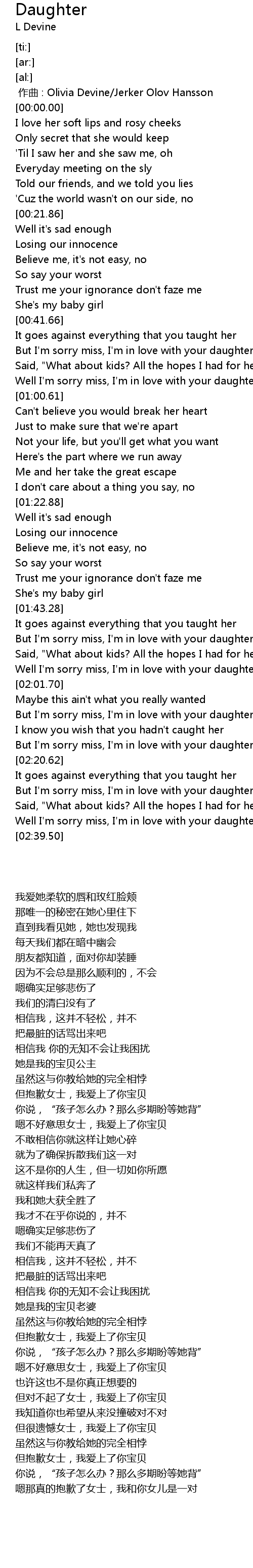 | [00:46.22] | But I'm sorry miss, I'm in love with your daughter |