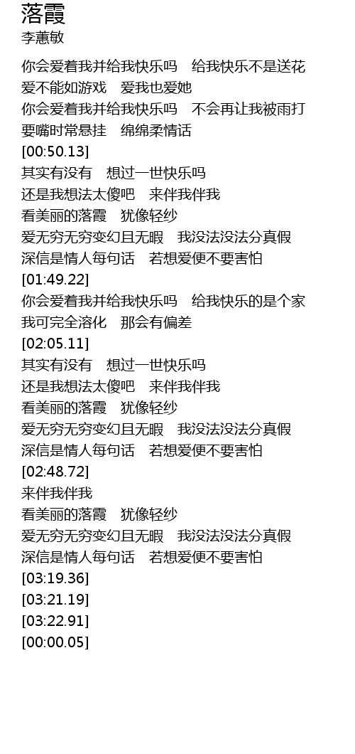 | [02:27.71] | 爱无穷无穷变幻且无暇 我没法没法分真假 |