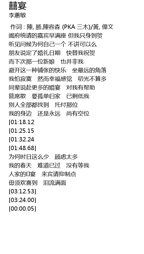 | [02:18.16][01:18.12] | 人家的�宴 甜得苦中带酸 |