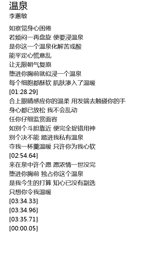 | [03:06.44] | 堕进你胸前 独占你这个温泉 |