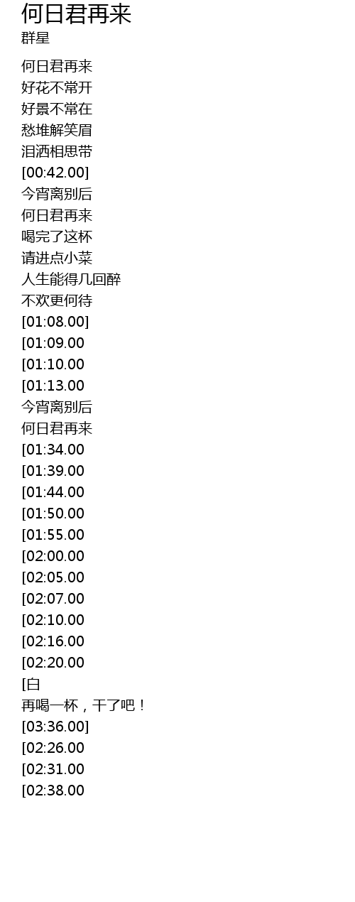 | [02:46.00][01:34.00] | 停唱阳关叠 |