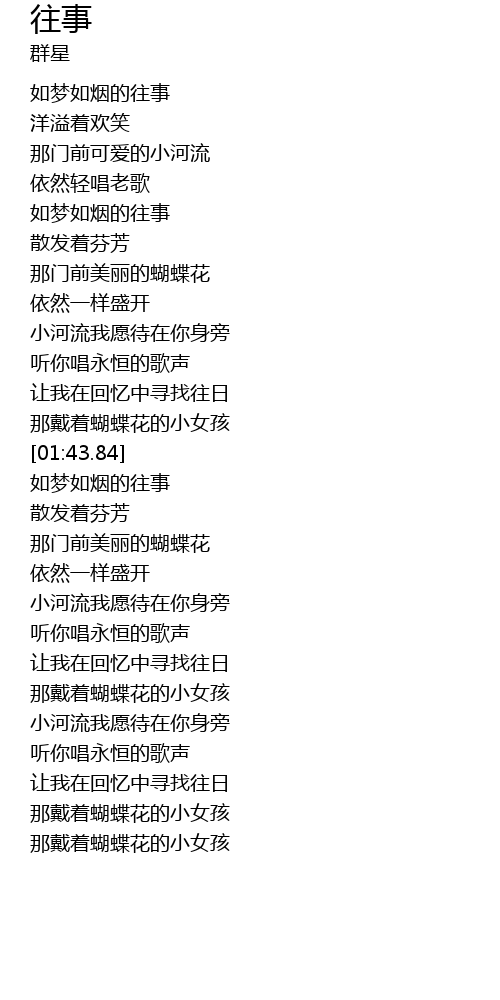 | [00:23.74] | 如梦如烟的往事 |