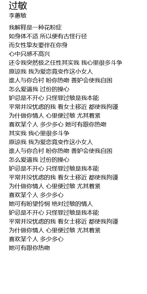 [02:55.97] 妒忌是不开心 只怪罪过敏是我本能