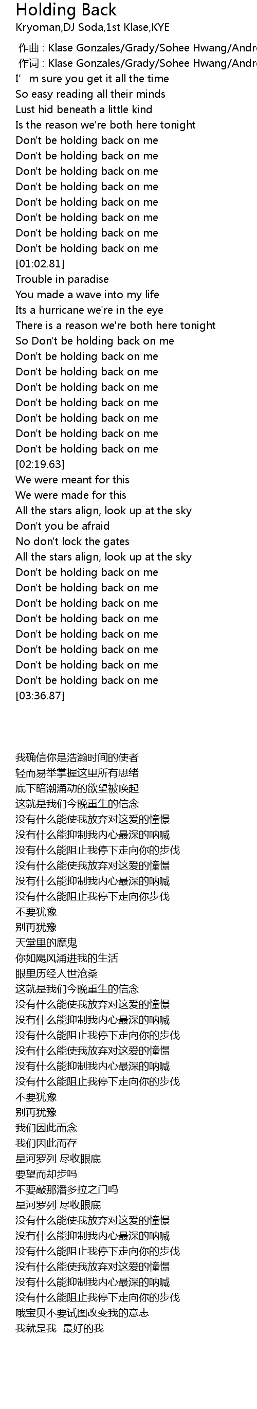 | [01:54.14] | So Don' t be holding back on me |