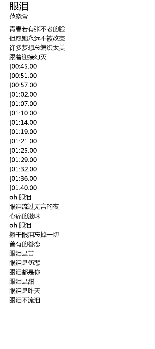 | [02:42.00][01:10.00] | oh 眼泪 |